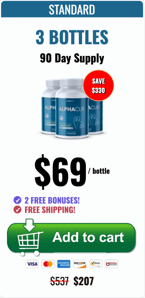 Alphacur is a natural supplement designed to address nerve pain at its root — not just mask the symptoms. It combines a scientifically formulated blend of active ingredients that work to reduce inflammation, repair nerve damage, and restore normal sensitivity and mobility.